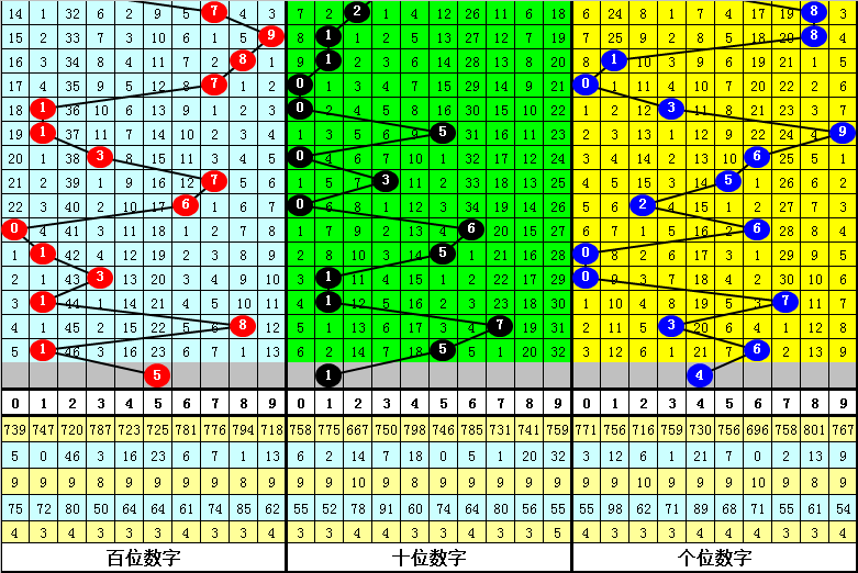 前7期012路比为3:3:1,2路号码相对走冷,现在012路号码遗漏值分袂为:3期、0期和1期,本期该位注2路号码。