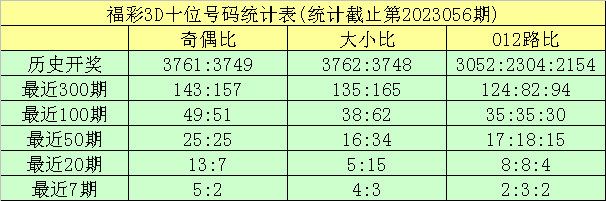 龙九福彩3D第2023057期奖号空洞保举: